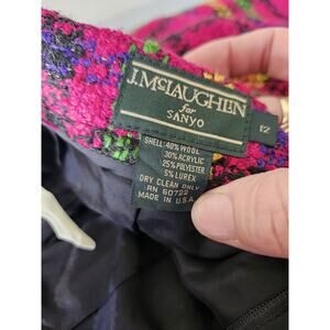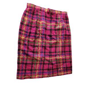 Vintage J McLaughlin Pencil Skirt Size 12 Pink Plaid Wool Blend Retro Lined