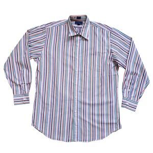 Vintage J McLaughlin Shirt Mens Medium Color Stripe Long Sleeve Button Down Y2K
