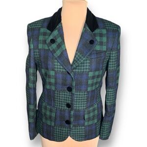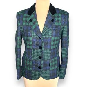 Vintage J. McLaughlin Blazer Jacket Hourglass Patchwork Green Plaid Velvet 10