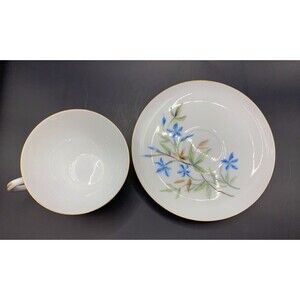 Vintage J P Limoges France Teacup Saucer Gold Trim Blue Flowers Replacement
