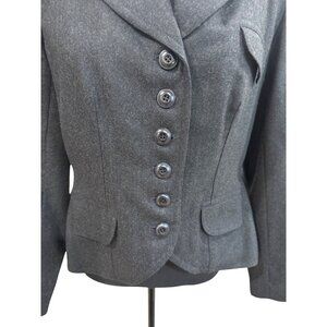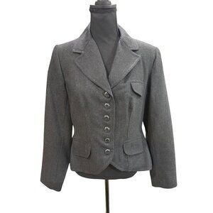 Vintage J. Peterman 100% Wool Blazer Jacket Size 8 Gray Tailored Fit Sustainable