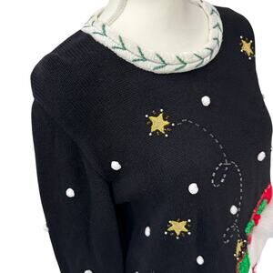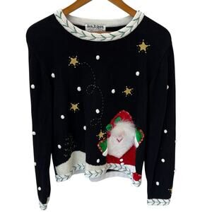 Vintage JACK B. QUICK Sweater Womens PM Christmas Santa Embellished Feathers