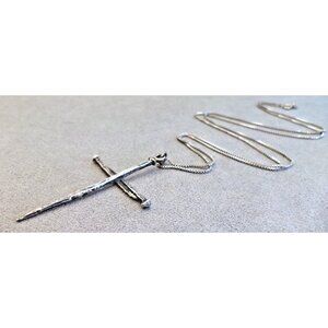 Vintage JAMES AVERY Brutalist STERLING Silver Nails CROSS PENDANT Sterling CHAIN
