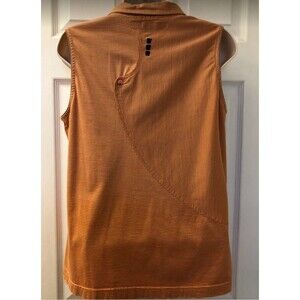 1-muted orange sleeveless medium square neckline embrodiered squiggly line collared approximately 23 inches long x 21 inches pit to pit.