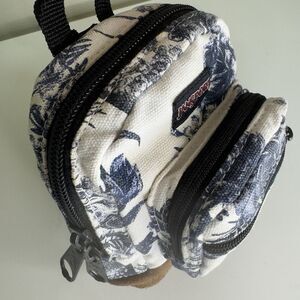 Vintage JANSPORT Mini Back Pack Coin Purse Wristlet Charm Blue Floral Leather