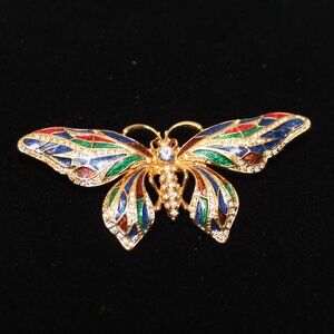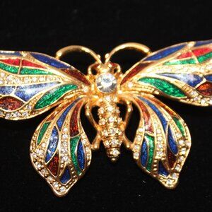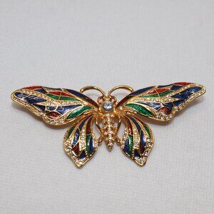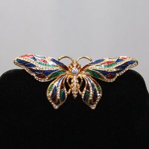 Vintage JBK Enamel And Swarovski Crystal Butterfly Brooch Pin