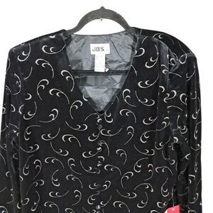 Vintage J.B.S. LTD Black Velvet Silver Sparkle Swing Jacket Size Large Buttoned