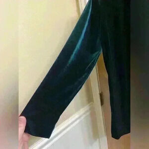 This vintage JBS LTD jacket for women is an emerald green velvet velour blazer that is super soft and perfect for everyday wear. The jacket has a chest size of 23 inches and a shoulder to hem length of 29.5 inches, making it a great fit for petites. The blazer has a new wave look and is an original piece from the 1980s.