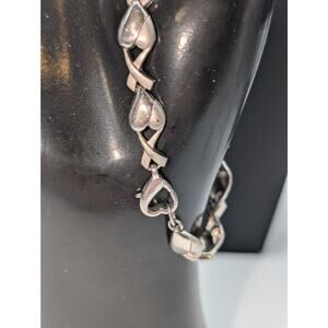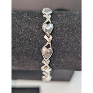 Vintage JC 925 Sterling Silver Diamond Accents Heart 'X' Link Bracelet 11.9g. Pre-owned, this bracelet is in excellent condition. Diamonds: less than 1mm.