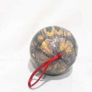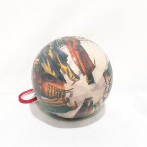 Vintage JC Penney Ball Paper Mache Victorian Scene People Outside Ornament 2"