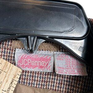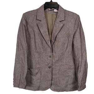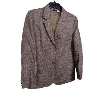 Vintage JC Penney Blazer Womens 16 Brown Multi Houndstooth Silk Wool Career