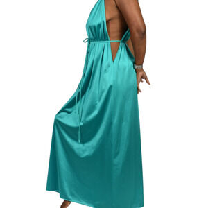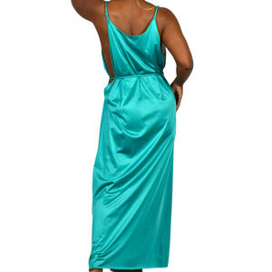 Vintage JC Penney Grecian Style Gown Large Green Teal Nylon Nightgown Maxi Silky