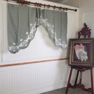 Vintage JC Penney Linen Swag Curtains with Sheer design 70 x 38 Sage Green