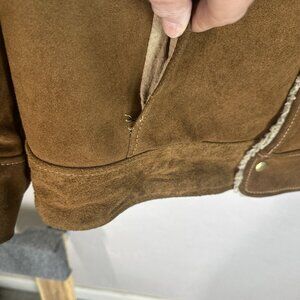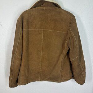 Vintage JC Penney Rancher Jacket Men 46 Brown Suede Shearling Lined Pockets Snap