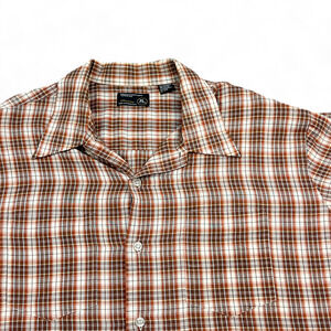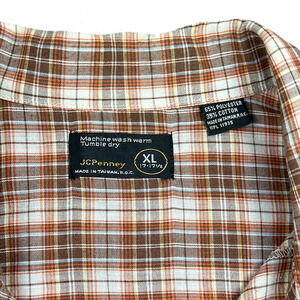 Vintage JC Penney Shirt Adult EXTRA LARGE Brown Burnt Orange Plaid Pockets 70s