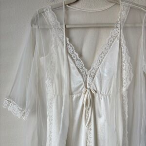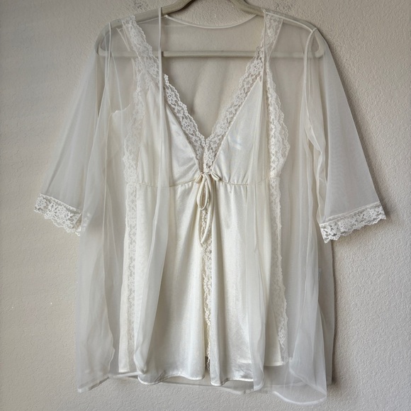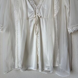 Vintage JC Penney Two-Piece Lingerie Mini Night Gown Top Robe Lace Romantic