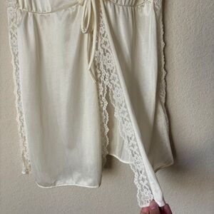 Two piece set with both mini length nightgown/top (depending on height - see measurements) and sheer robe topper.