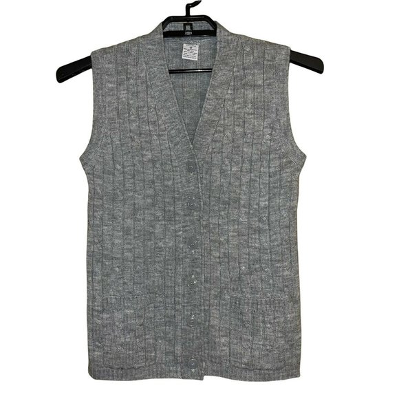 Vintage JC Penney Women Sweater Vest Medium Cable Knit Gray Button Front V-Neck