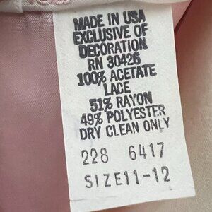 Vintage J.C. Penny Pink Lace & Satin Prom Formal Maxi Dress Puff Sleeves Size 11