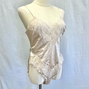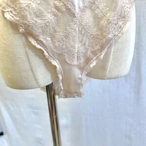 Vintage JC Penny high cut blush cream lace teddy cami romper one piece size 34