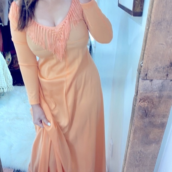 Vintage JC Penny maxi dress with fringe union made size small