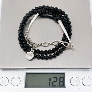 Title: Vintage JC Sterling Silver 925 Onyx Beaded Necklace 17"-19"