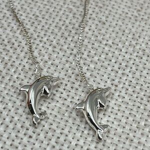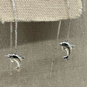 Vintage JCM Sterling Silver Dolphin Threader Earrings