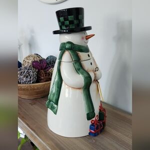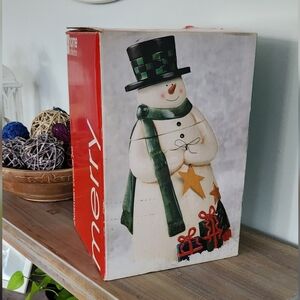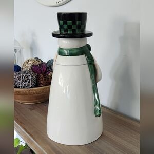 β Vintage JCPenney Christmas Snowman Cookie Jar, 15β Tall with Green Scarf & hat