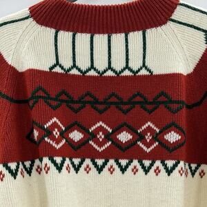 Vintage JCPenney Fair Isle Mock Neck Sweater XL Cream Brown Ski Resort Retro