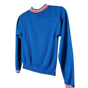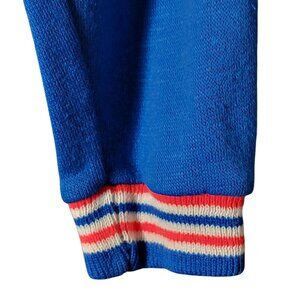 Vintage JCPenney Kids Boy Blue Striped Hems Crewneck Retro Varsity Sweater 14/16