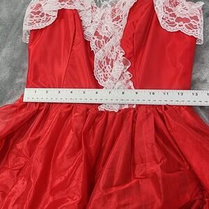 Vintage JCPenney Prom Dress Womens XS Red White Satin Lace Southern Belle Gown