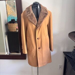 Vintage JCPenney The Men’s Shop Camel Wool Coat w/ Faux Fur Collar – Size 40R