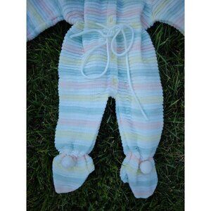 Vintage JCPenney Toddletime Hooded Coverall One Piece Pastel Stripes Size 0-6 M