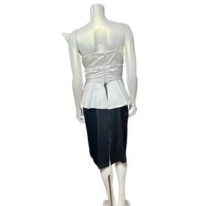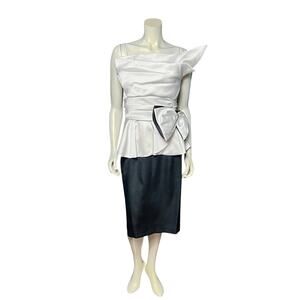 Vintage JCPenney White Satin Peplum Top Rhinestone Bow Size 9 10