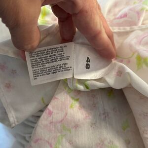 Vintage JCPenney home round tablecloth 72” white pink floral ruffle cottagecore