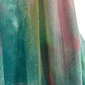 MXI Teal & Pink Sparkle Overlay Padded Bodice Prom Dress