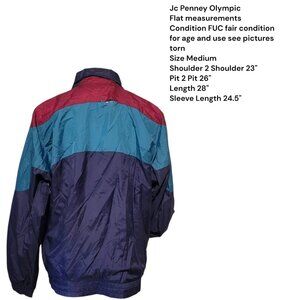 Vintage JCPenny Olympic Unisex Med Windbreaker Jacket Zip Up Coat 1980s Tear
