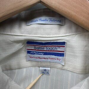 Vintage JCPenny Satin Touch Men 16 34/35 Ivory Button Up Single Needle Tailoring