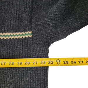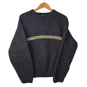 Vintage J.CREW 90's Men's Black Green 100% Wool Hand Knit Stripe Sweater Medium