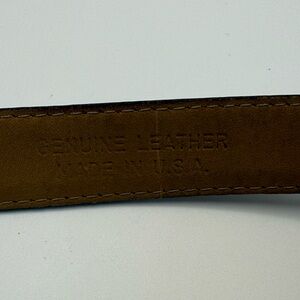 Vintage J.Crew black leather belt made in the USA, featuring a classic tortoise-style buckle and timeless minimalist design. This traditional leather belt reflects the quality construction J.Crew was known for in the late 80s–90s, with clean lines and durable materials.
