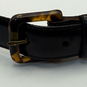 Vintage J.Crew Black Leather Belt Size 27 Made in USA Tortoise Buckle