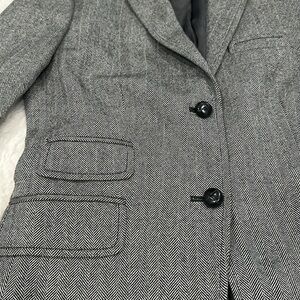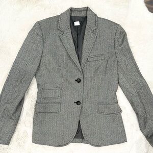 Vintage J.Crew Herringbone 100% Wool Blazer Black White size 6