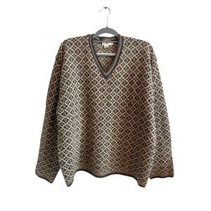 Vintage J.Crew Oarsman Logo XL Brown Wool Sweater V-Neck Pullover Diamond Pattern Preppy. . Made in Hong Kong. Good preowned vintage condition. No stains or holes. Please see photos for details and measurements. Thanks for looking.