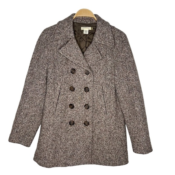 Vintage J.Crew Sz Medium Double Breasted Tweed Pea Coat Quilted Lining