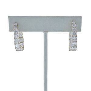 Vintage JD Sterling Silver 925 Gold Tone Cubic Zirconia Hoop Earrings