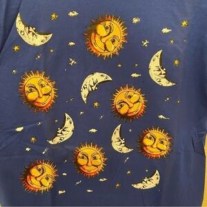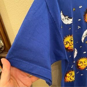 Pre-owned in great condition with no rips or stains. Fun vintage blue Sun and Moon graphic t-shirt. Not single stitch. Can be unisex. Made in USA. Comes from smoke and pet free home.