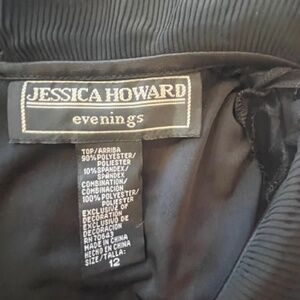Vintage JESSICA HOWARD Black Velvet Surplice Ruffled Neckline Sz12 Holiday NYE