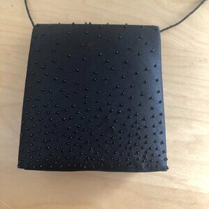Gorgeous Evening Bag in Black Satin with Jet Black Beads with a Beaded Chain