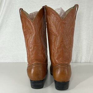 These Vintage JE-VER COWBOY Boots are a stylish and unique addition to any man's wardrobe. Made with brown ostrich leather and featuring an almond toe shape, they exude a classic Western cowboy vibe. With a pull on closure and crafted in Mexico, these boots are perfect for casual or workwear occasions during the summer, fall, or spring seasons. The brand's vintage appeal adds a touch of nostalgia to these timeless boots, making them a standout choice for any cowboy enthusiast.