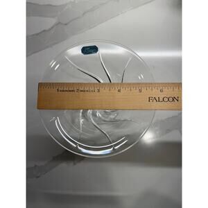 Clear, delicate bowl sitting in a pretty pedestal base. Use it as a candy dish or whatever you choose.